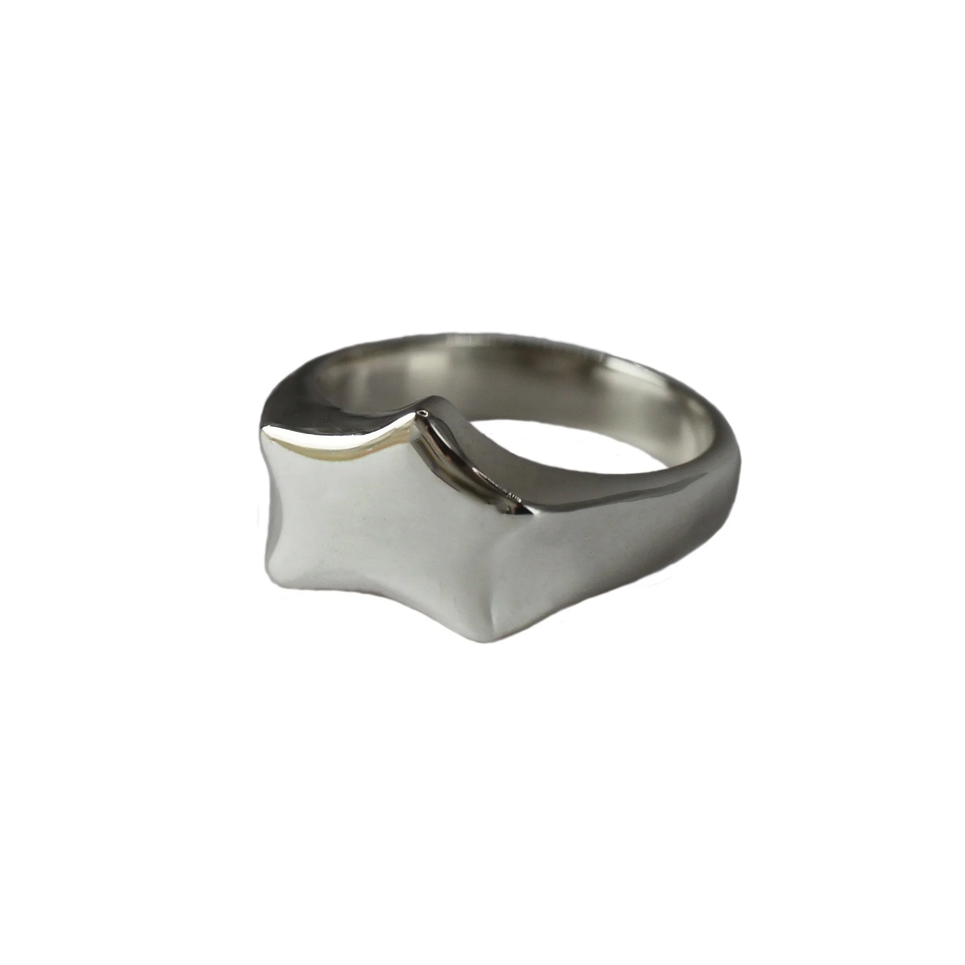 Star shaped signet ring handmade in sterling silver, comfortable fitting perfect for everyday wear.